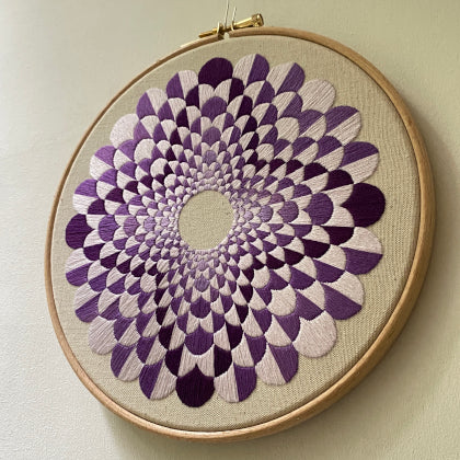 Rhombus rainbow (kit example) dark to light finished embroidery hoop